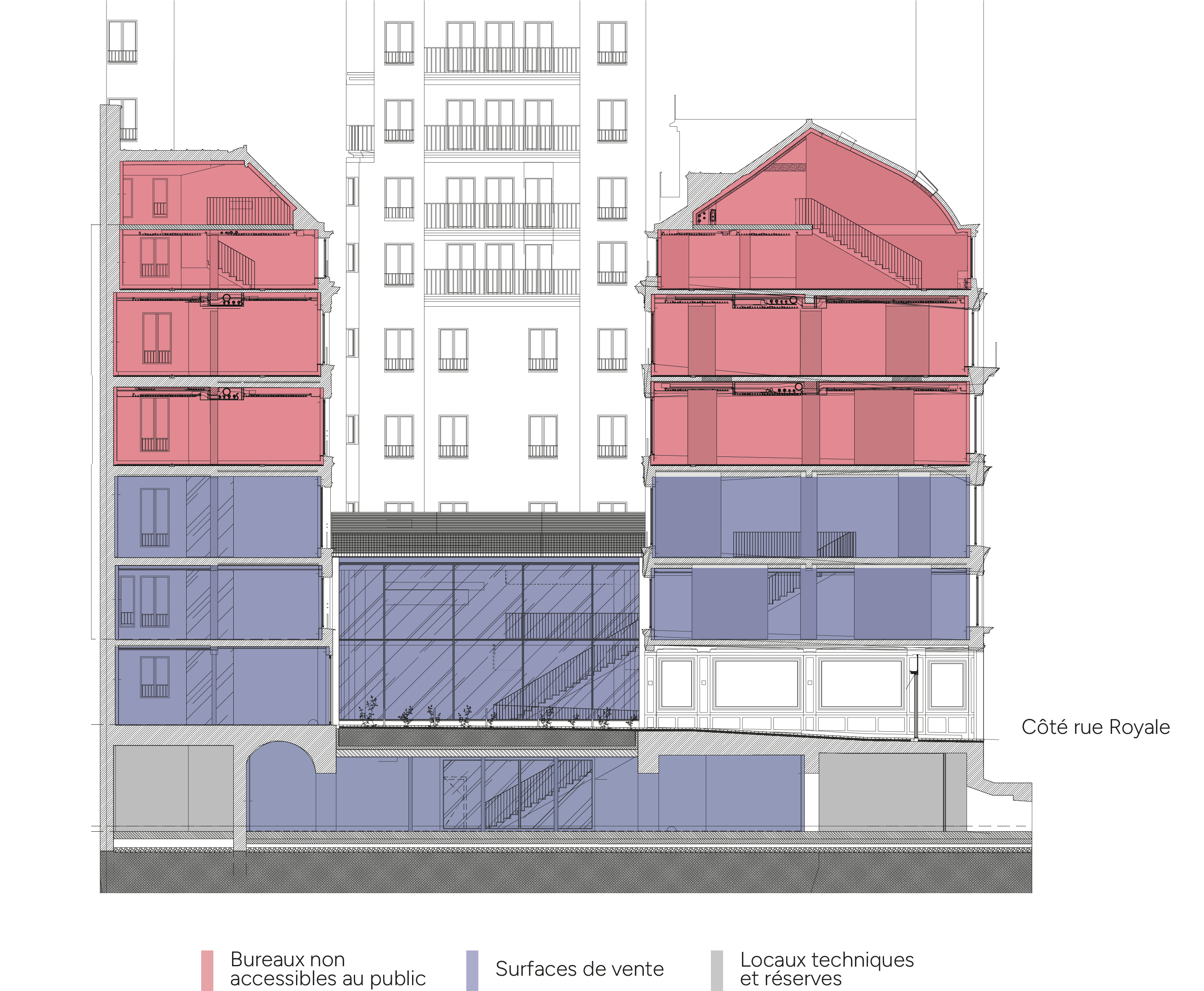 Cet actif propose un parfait équilibre des usages : moitié commerces, moitié bureaux.